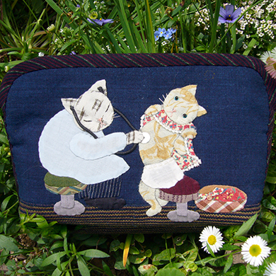 小見山信枝の作品は古布のはぎれを物語を綴るように縫いつなぎ、懐かしい情景、愛しいものたちの世界を描いています。